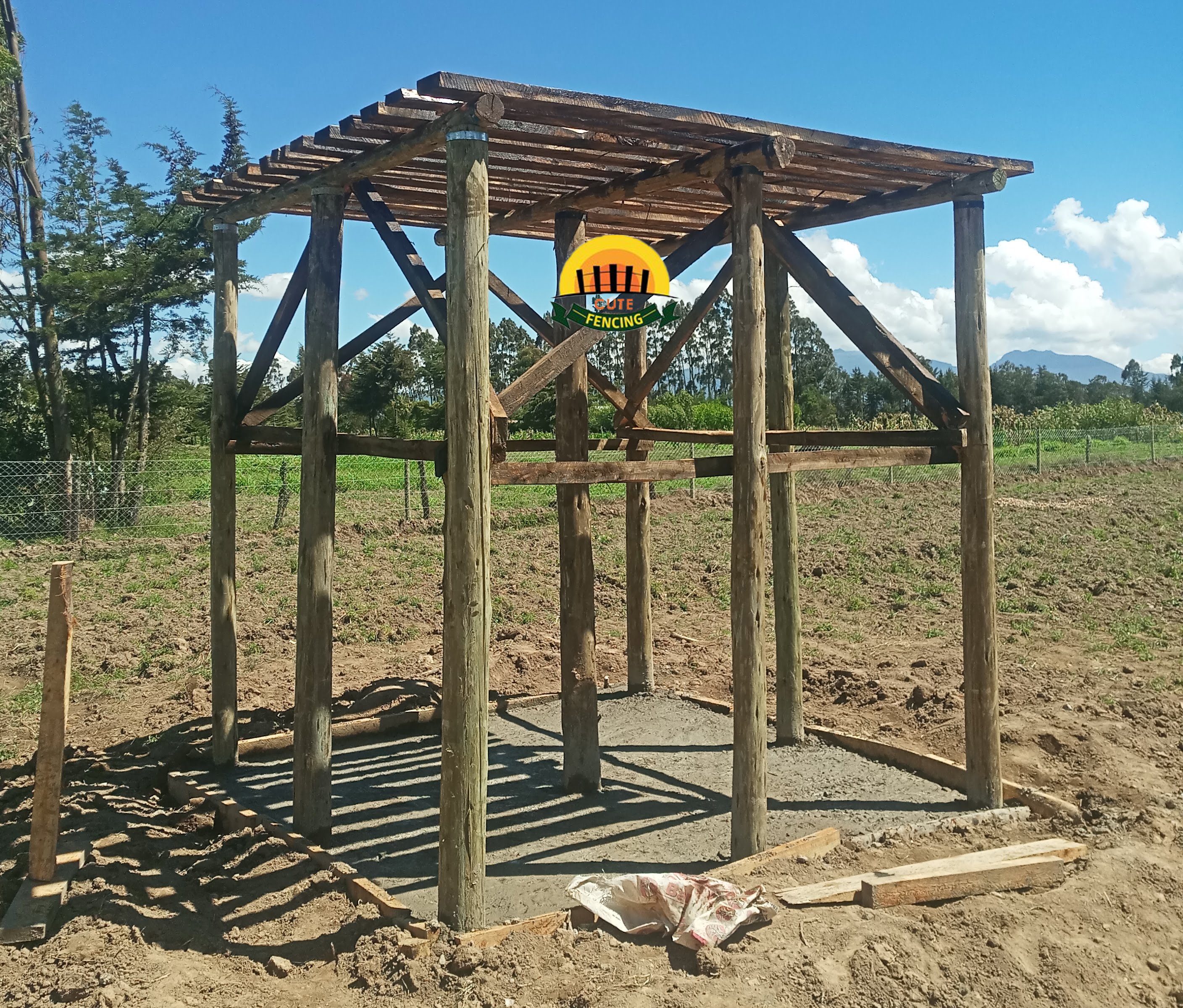 Picket Fence using Pressure Treated wooden poles